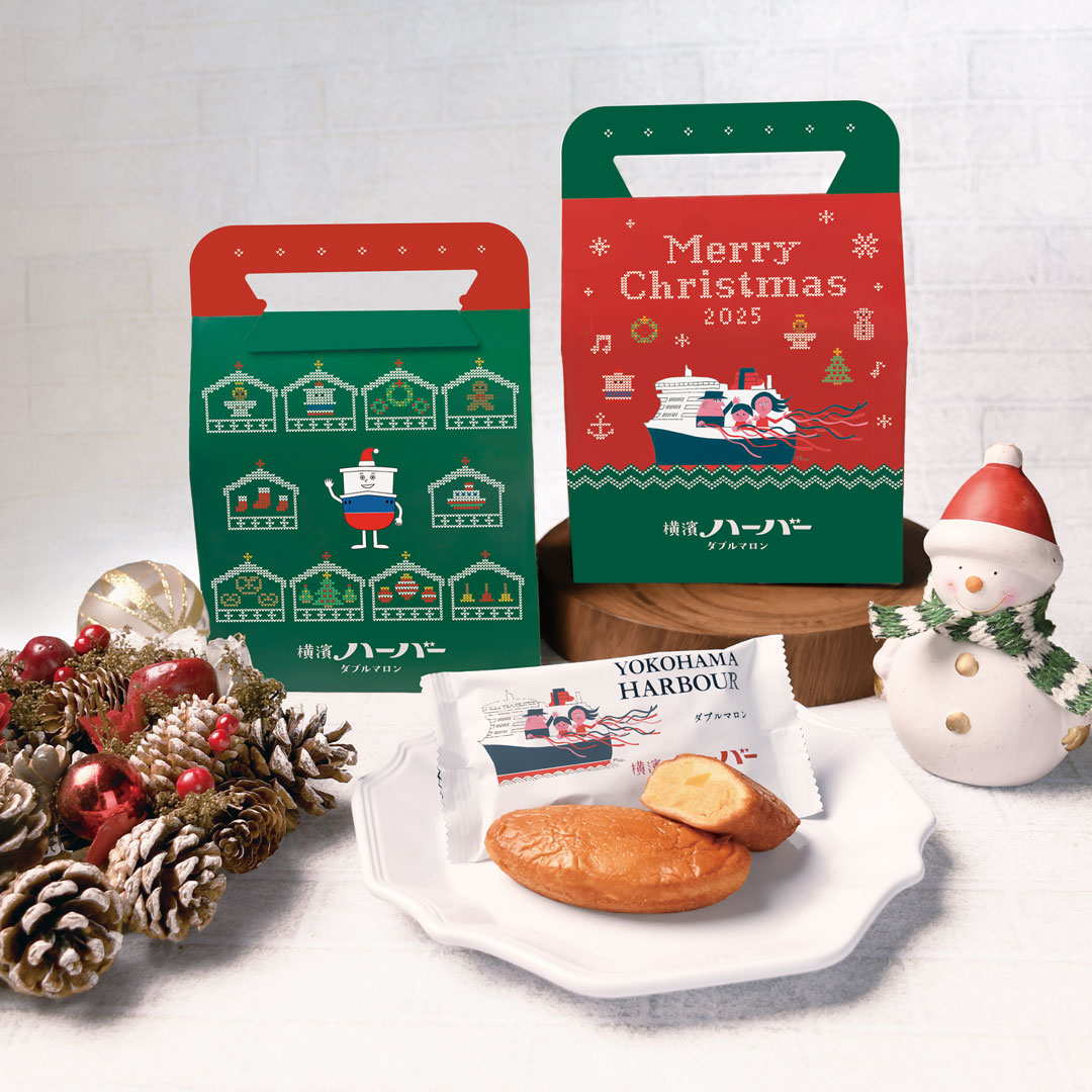 表面がサンタクロース、裏面にクリスマスツリーがデザインされたカジュアルBOXに横濱ハーバーシリーズを詰め合わせました。
